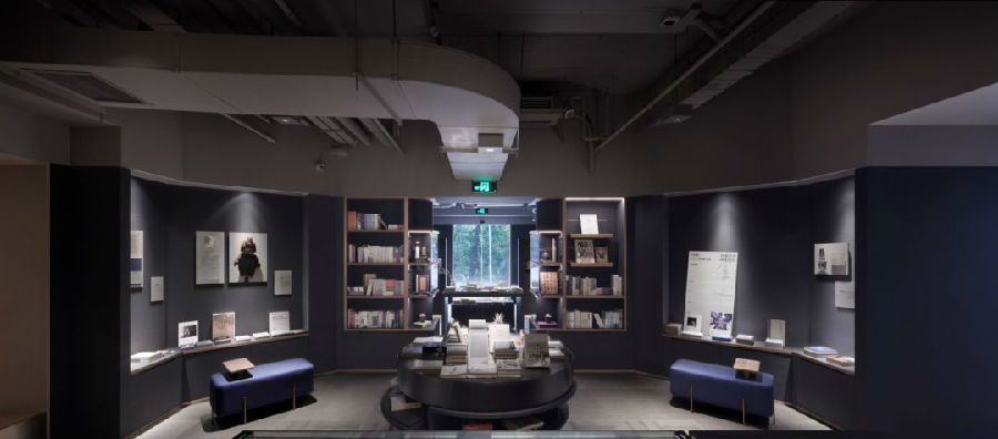 再深处的绿色空间继续连接着外界,同时也链接着旧时空。活字状的文字装置物像是在表达着什么,但有可能又什么都没在表达。一旁的柜子里摆着那些年的留言本,各式的封面,各种的纸质,形状、色彩都不一,在此充当着不仅仅是空间内的装饰或景物,还体现着时光痕迹。内里有着千百人千百样不同的、曾经滚烫的真切的字迹,有内心独白,有诚挚祝愿——那些是实实在在的可以触碰的记忆片段。随手翻看,以旁人的方式去回忆起这个世界曾经的景象,如同穿越般地回到当初那个时间点……结合现今同时可见过去与未来,那些都是历史,是发生在我们周边的真实的存在。