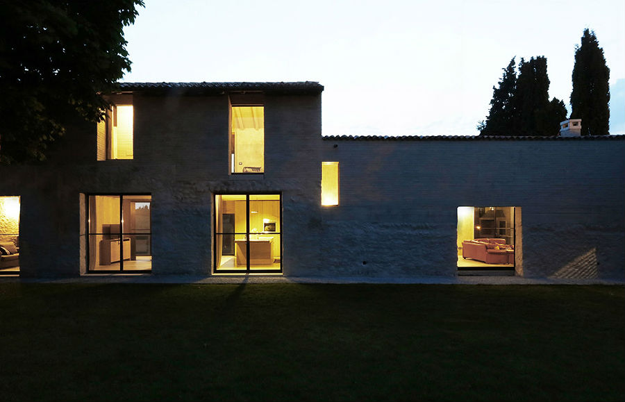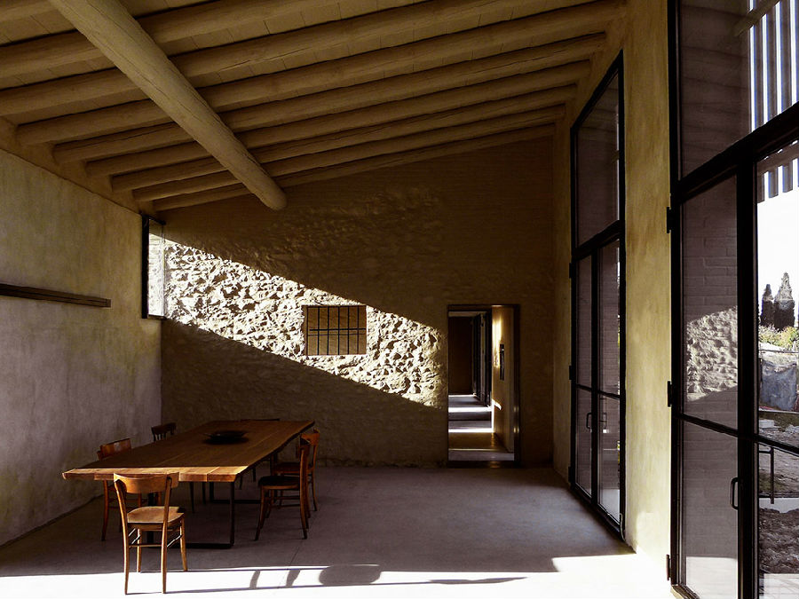 意大利北部维罗纳城外的丘陵加尔达湖附近,某古老的石制谷仓被改建为质朴的别墅建筑。