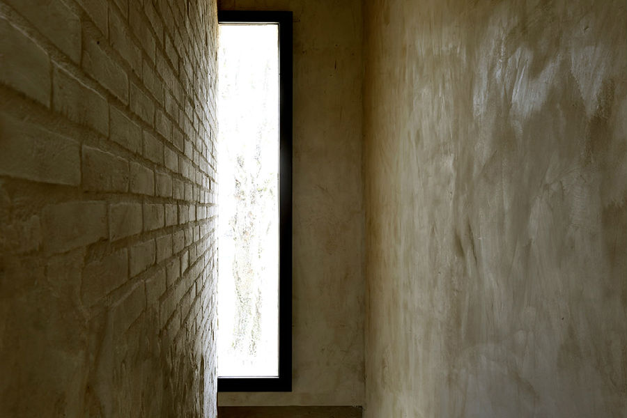 为了减少材料之间肌理的对比和最后效果的视觉冲击力,建筑师尝试了新的砖石铺设方式,将砖沿着长边铺设,然后还故意将有些砖轻微凸出,形成如同石头砌墙般的凹凸效果,同时与上次混凝土浇筑后留下的横向水平模板印痕发生关系。新的砖砌表面有着惊人的光影魅力。