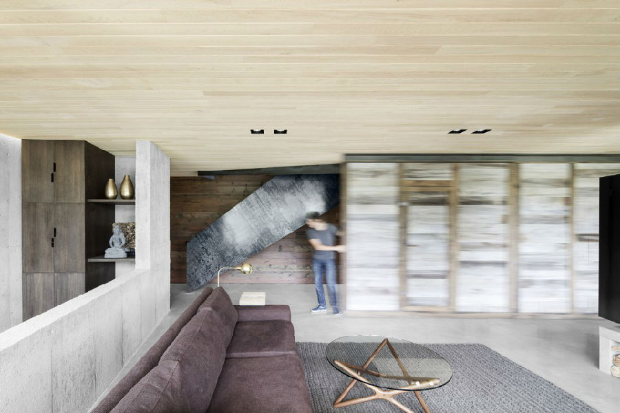 建筑师与业主密切合作,用旧的建材营造新的空间。车库的木门被用来制成可移动的隔墙,分隔主要的起居空间,这样利于在寒冷的冬日保持室内的温度,防止热量从楼梯空间流失到楼上去;同时这些木料还被用壁炉的燃料。